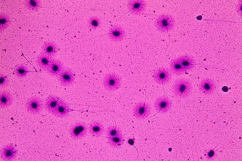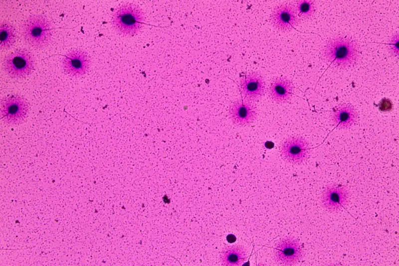 O kit de teste de fragmentação de DNA CANfrag foi projetado para detectar fragmentação de DNA em espermatozóides humanos. O valioso e intelectual recurso de nossa equipe tornou o kit fácil de executar e pontuar. Os resultados obtidos com CANfrag são consistentes e confiáveis. Este é um kit baseado em teste SCD. O princípio de funcionamento do kit baseado na desnaturação do DNA para avaliar e diferenciar entre DNA fragmentado e intacto nos espermatozóides. Os espermatozóides não tratados são incorporados entre duas camadas de base de agarose e microgel superior inerte, que são então tratados com ácido para gerar motivos restritos de DNA de fita simples a partir de quebras de DNA. Em seguida, é fornecido tratamento de lise sequencial para remoção de proteínas nucleares. A coloração com corante torna o halo e o núcleo visíveis ao microscópio de campo claro. O esperma com fragmentação mínima de DNA ou sem quebras forma grandes halos de alças de DNA intactas ao redor do núcleo central. O esperma com DNA fragmentado forma um halo de tamanho mínimo ou nenhuma formação de halo. A fragmentação do DNA no esperma pode ser uma causa de infertilidade masculina que não pode ser detectada por parâmetros de rotina do sêmen, como concentração espermática, análise de motilidade e avaliação morfológica.